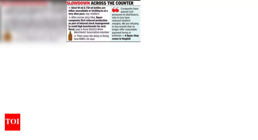 पुणे-अबकारी शुल्क वाढविण्याच्या अलीकडील निर्णयामुळे अल्कोहोलची दुकाने आणि वितरण नेटवर्क ओलांडून भारतीय-निर्मित परदेशी दारू (आयएमएफएल) ब्रँडची कमतरता निर्माण झाली आहे, असे उद्योगातील भागधारकांनी सांगितले.ते म्हणाले की किंमत शॉक, उत्पादन मंदी आणि लॉजिस्टिकल विलंब यामुळे मुख्य प्रवाहातील आयएमएफएल ब्रँडची सुमारे 30-40% कमतरता निर्माण झाली आहे.या प्रवृत्तीच्या बाबतीत किरकोळ विक्रेत्यांनी सांगितले की, देशातील दारूच्या मागणीत लक्षणीय वाढ झाली आहे, कारण ग्राहक किंमतीच्या शिडी खाली उतरतात. “काउंटरच्या ओलांडून देशातील दारूच्या दिशेने हळूहळू आणि दृश्यमान बदल होत आहेत. ज्यांनी यापूर्वी लोअर-एंड आयएमएफएल विकत घेतले आहे ते आता स्वस्त पर्यायांकडे जात आहेत,” पुणे जिल्हा वाईन मर्चंट्स असोसिएशनच्या सदस्याने सांगितले.धनोरी येथील दारूच्या दुकानाचे मालक आदित्य पाटील म्हणाले: “स्टीप एक्साईज ड्युटीच्या वाढीनंतर, सर्वात नियमित आणि वेगवान फिरणारी दारू ब्रँड-सामान्यत: दररोज किंवा किंमत-जागरूक ग्राहकांनी खरेदी केलेले-एकतर स्टॉक किंवा अनेक पॅक आकार गहाळ झाले आहेत. आता जवळपास 25 दिवस उपलब्ध आहेत, फक्त 180 एमएल बाटली आहेत. बाटल्या येत नाहीत. लोक नियमितपणे विचारतात, विशेषत: खालच्या आणि मध्यम-श्रेणीची व्हिस्की आणि रम, फक्त शेल्फवर नसतात. “ते म्हणाले: “किंमतीच्या भाडेवाढ व्यतिरिक्त, मद्य कंपन्यांनी किरकोळ विक्रेत्यांना प्रति बिल मिळविण्यासाठी वापरल्या जाणार्या नेहमीच्या व्यापार योजना आणि रोख सूट कमी केली आहे. मोठ्या प्रमाणात ऑर्डरसह येणा additional ्या अतिरिक्त योजनांनीही आमच्या मार्जिनला हार्ड केले आहे. आम्ही रिटर्न्सला कमी केले आहे आणि रिटेल्सने रिटेल्सचा उपयोग केला आहे. त्या यापुढे वाजवी देय अटी किंवा योजना ऑफर करत नाहीत, “पुणे जिल्हा वाईन मर्चंट्स असोसिएशनच्या आणखी एका सदस्याने सांगितले: “गेल्या काही दिवसांत आयएमएफएलच्या बहुतेक मोठ्या ब्रँडला कमतरता भासली आहे. दारू कंपन्यांना त्यांची उत्पादने ग्राहकांना परवडणारी राहतील हे सुनिश्चित करण्यासाठी त्यांच्या एमआरपीचे पुनर्वसन आणि सुधारित करण्यासाठी वेळ लागला. काही कंपन्यांना किंमती निश्चित करण्यासाठी 10-20 दिवस लागले. क्रंचमध्ये भर घालण्यासाठी, आयएमएफएलच्या दोन सर्वात मोठ्या उत्पादकांनी जूनमध्ये आर्थिक वर्षाच्या अखेरीस उत्पादन कमी केले.” पुढील आर्थिक वर्षासाठी उच्च-विक्री बेंचमार्क सेट करणे टाळण्यासाठी बहुराष्ट्रीय कंपन्या त्यांच्या आर्थिक वर्षाच्या शेवटच्या महिन्यात स्टॉक चळवळीस मर्यादित करतात. परिणामी, उत्पादन शुल्क वाढण्यापूर्वीच या खेळाडूंकडून पुरवठा आधीच सुस्त होता, असे असोसिएशनच्या दुसर्